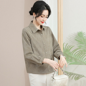 休闲夹克2025新款中老年秋季薄短外套女士显瘦衬衫妈妈装印花衬衫