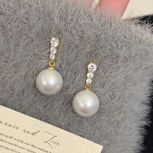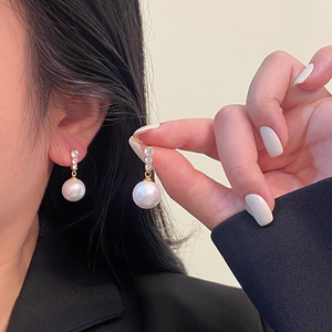 澳白色珍珠吊坠微镶锆石闪锆耳钉女精致轻奢高级感法式耳环耳饰