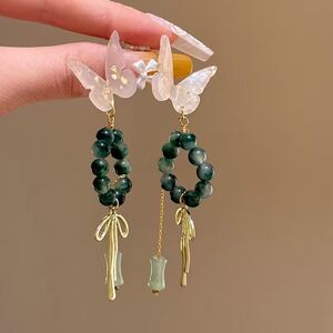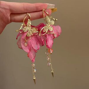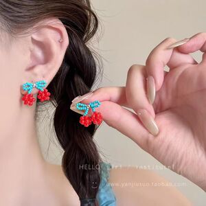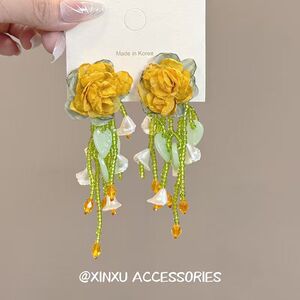 森系简约布艺花朵耳环小众设计感气质甜美小清新时尚个性精致耳环