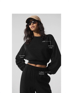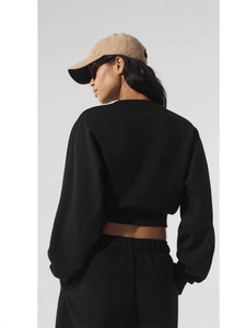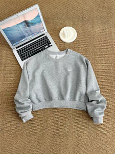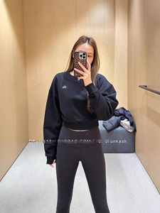 青岛韩国alo clas秋季新款全棉短款露肚脐长袖上衣休闲运动卫衣女