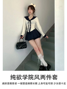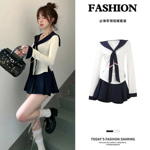 海军领上衣白色内搭打底衫长袖t恤女a字jk制服短裙子套装早秋穿搭