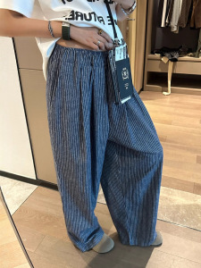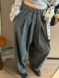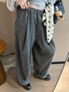 2025早秋新款慵懒松弛感磨毛竖条纹直筒宽松休闲裤女韩系懒人裤