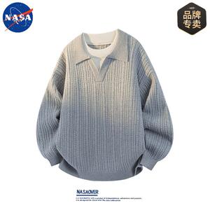 NASA品牌秋冬季高级感假两件长袖POLO毛衣男士休闲宽松纯色针织衫