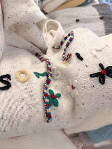 韩系杏色字母钩花套头连帽毛衣女秋冬外穿小个子宽松慵懒针织上衣