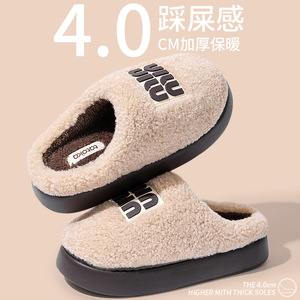 聚热保暖4cm加绒加厚棉拖鞋女款室内居家卧室棉鞋2025冬季拖鞋男