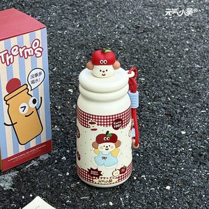 高颜值女生可爱便携式保温杯ins新款学生卡通316不锈钢双饮吸管杯