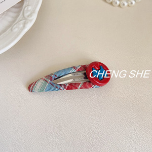 韩国品质新款格子红色纽扣发夹高级感百搭刘海夹网红学院风侧边夹