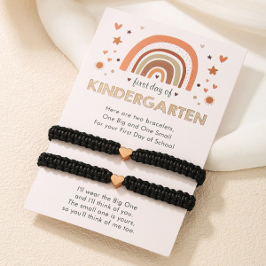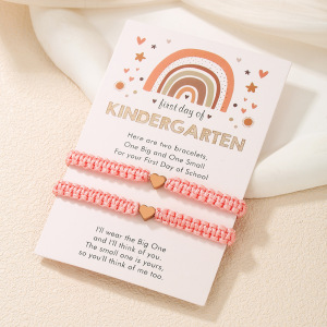 纯手工编织手绳欧美开学返校季礼物亲子款不锈钢爱心手链女高级感