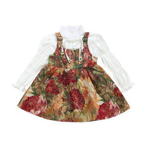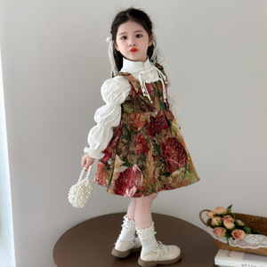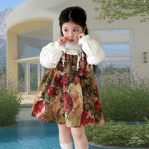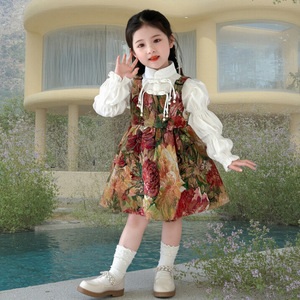 女童裙套装两件套2025秋季新儿童洋气复古提花背带连衣裙套装时尚