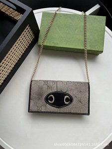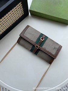 跨境时尚单肩新款牛皮大容量钱包链条多卡位横款外贸钱夹零钱包