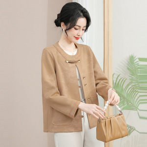 中年妈妈气质优雅短款上衣外套女2025春秋装新款中老年时尚夹克衫