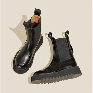 加绒英伦徽章扣显瘦增高切尔西靴2025秋冬新款厚底短筒马丁靴子女