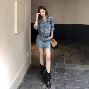 RHGD实拍~初秋牛仔连衣裙女夏季小众设计感港味复古chic裙子