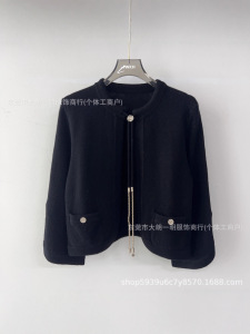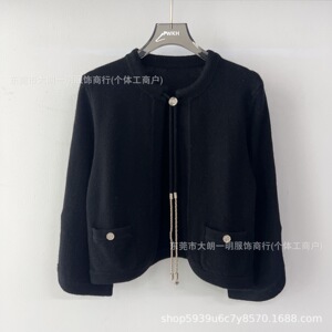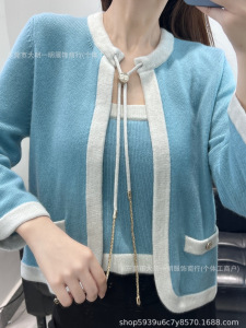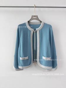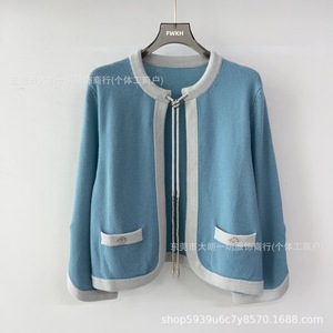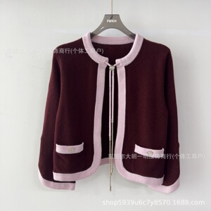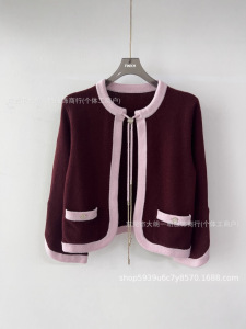 高版本CH家撞色圆领长袖羊绒针织开衫25秋冬新款细腻软糯上衣女