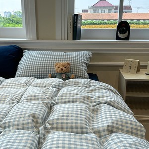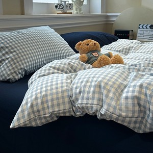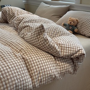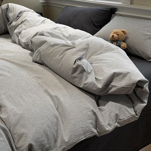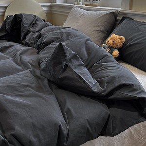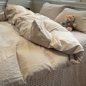 简约高级感无印风床上用品四件套软糯水洗棉床单被套床笠学生