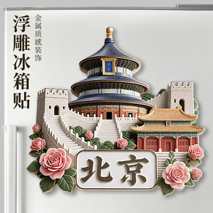 北京金属冰箱贴文创城市地标磁吸贴景区天坛万里长城磁贴纪念品