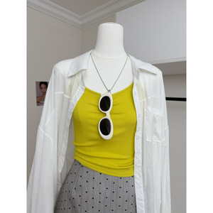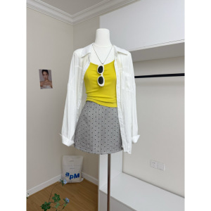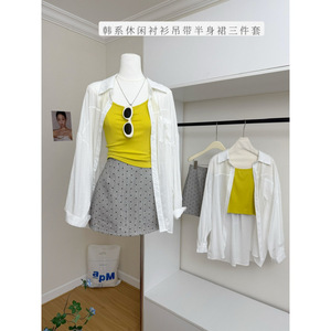 塞纳新款薄款宽松慵懒风长袖衬衣+吊带背心+高腰显瘦短裙三件套