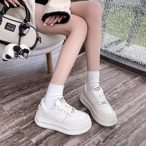 2025秋季增高厚底运动休闲板鞋女新款百搭圆头系带小白鞋爆款单鞋