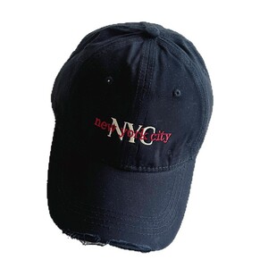 儿童新款美式牛仔棒球帽破洞男童女童刺绣鸭舌帽NYC字母百搭帽子