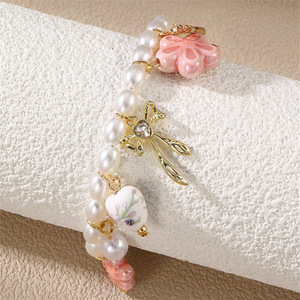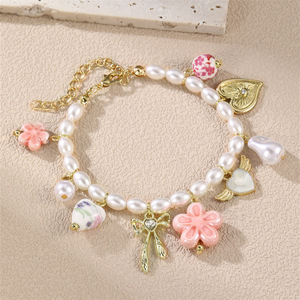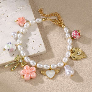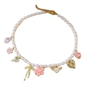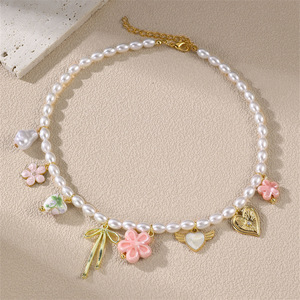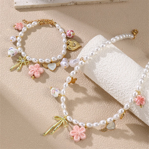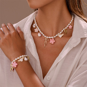 SZ0967跨境欧美女新款陶瓷爱心吊坠珍珠花卉女项链手链套装饰品