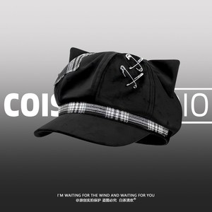 原创设计感y2k~小众猫耳朵八角舌帽女秋冬亚文辣妹显脸小贝雷帽潮