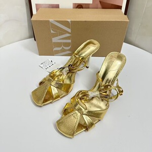 ZA御姐气质金色高跟鞋女2025新款交叉带高跟凉鞋夏季鱼嘴罗马鞋女