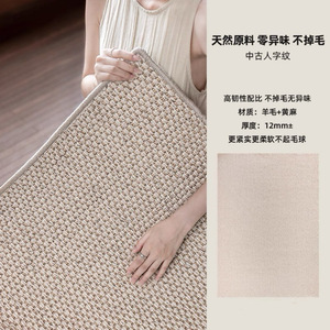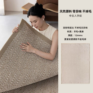 新西兰羊毛黄麻混纺客厅地毯人字纹中古高级感卧室毯侘寂床边毯