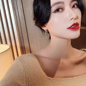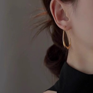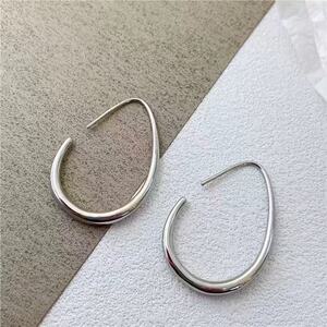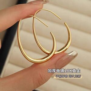 新款冷淡风水滴耳圈简约椭圆素圈耳环时尚个性女百搭精致镂空耳饰