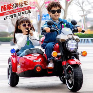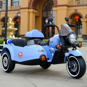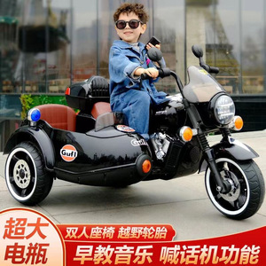 儿童电动摩托车小孩电动三轮车男女宝宝挎斗玩具警车童车可坐双人