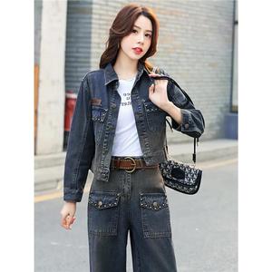 2025新款秋牛仔外套两件套女洋气时尚小个子气质女神范高级感套装
