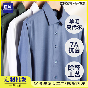 羊毛衬衫男长袖7A抗菌除醛商务休闲男装秋季新款莫代尔男士白衬衣男装工厂定制批发