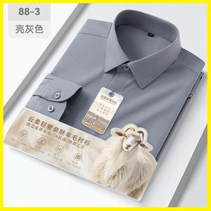 男士衬衫商务正装绵羊毛衬衫男长袖免烫抗皱衬衣职业寸衫男装批发