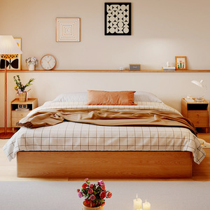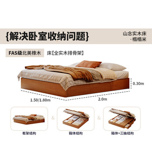桐语特 原木风高箱储物双人简约小户型主卧无床头储物三抽实木床