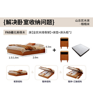 实木床+D17垫+床头柜*2/全实木排骨架