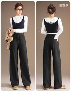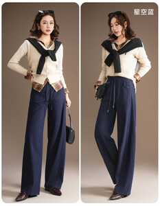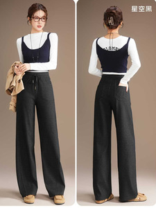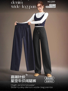 2025年五只白鹅秋冬爆款高端针织星空牛仔阔腿裤女提花休闲裤2591