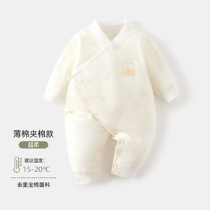 婴儿蝴蝶衣a类50克夹棉新生儿和尚服无骨宝宝爬服秋冬婴儿连体衣