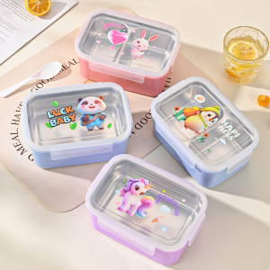 304不锈钢饭盒长方形分格便当盒单层学生上班族隔热可微波礼品