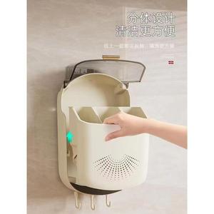 小熊筷子筒家用高档新款免打孔收纳盒挂墙壁挂式筷子桶带盖防尘