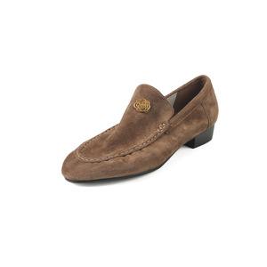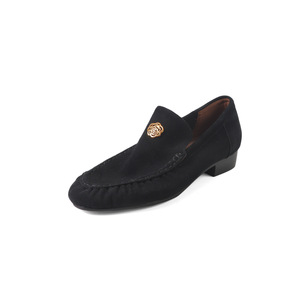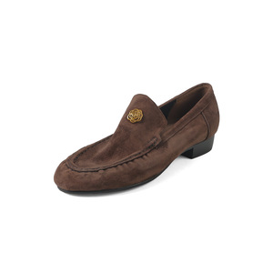 打版中简约复古法式绒面圆头山茶花深口一脚蹬单鞋百搭粗跟乐福鞋