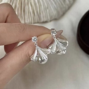 法式气质银杏叶珍珠耳钉2025秋季新款小众扇形珍珠耳环轻奢耳饰女