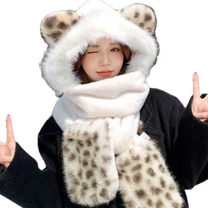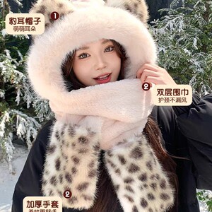 毛绒绒新款女士冬季保暖虎纹骑行护耳帽子围巾手套一体百搭三件套