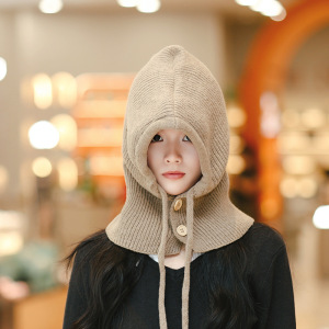 巴拉克拉法帽子女冬季保暖大头帽子围脖一体头套护耳毛线帽针织帽