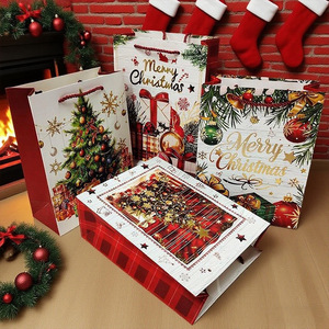 圣诞节包装礼品纸袋白卡纸袋礼品包装袋烫金加印刷圣诞节纸袋现货