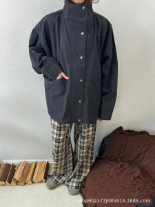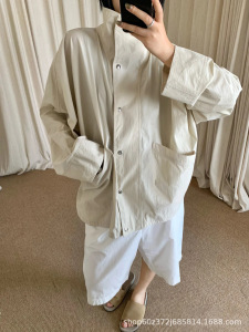 现货25新款小众设计TT北欧极简风蝙蝠袖薄款立领短款夹克风衣女