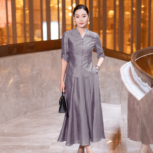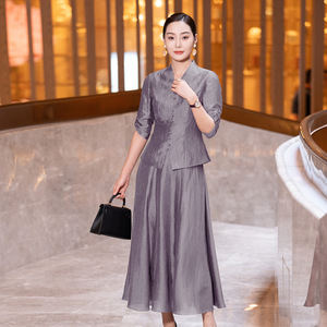 高端醋酸套装裙女2025秋季新款新中式复古气质高级感半身裙两件套