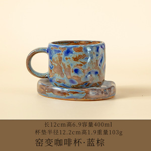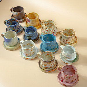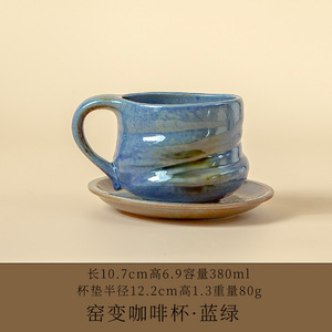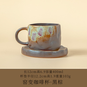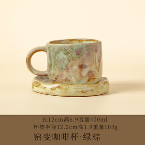 跨境亚马逊小众窑变幻彩咖啡杯马克杯水杯送礼咖啡杯碟套装