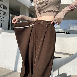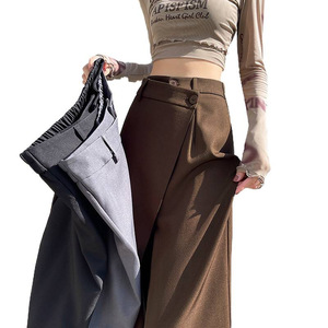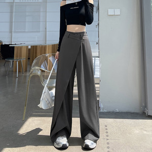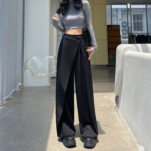 不规则拼接直筒阔腿裤女2025秋季新款炸街垂感西装裤设计感长裤子