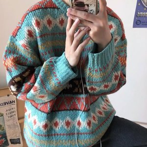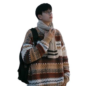 费尔岛圣诞毛衣男日系复古慵懒感加厚古着潮牌内搭冬季针织衫批发