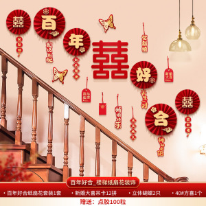百年好合_楼梯纸扇花装饰