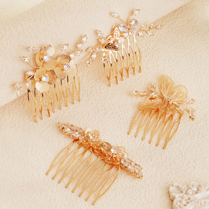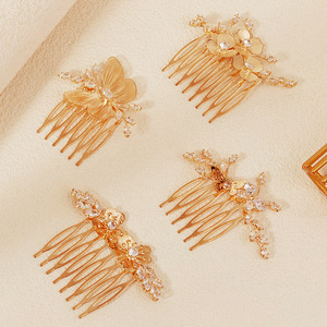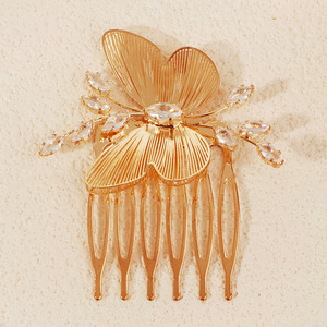 奢华富贵金色花卉插梳灵动蝴蝶发插金属镶锆石发梳女秀禾新娘发饰